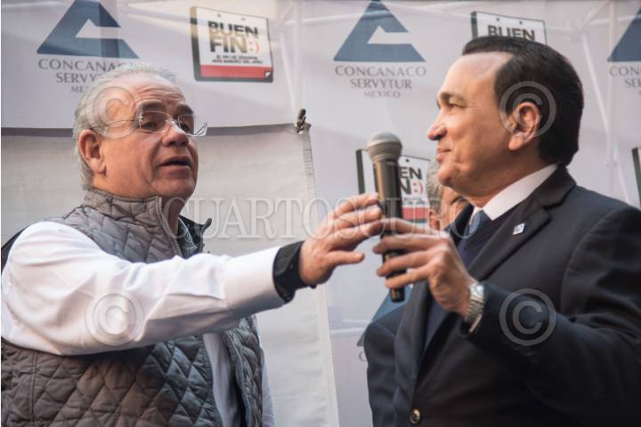 CIUDAD DE MÉXICO, 16NOVIEMBRE2018.- Rogelio Cerda Pérez, Procurador Federal del Consumidor, y José Manuel López Campos, presidente de Concanaco Servytur, encabezaron esta mañana el arranque del Buen Fin 2018 en la Plaza Comercial parque Delta. FOTO: MARIO JASSO /CUARTOSCURO.COM