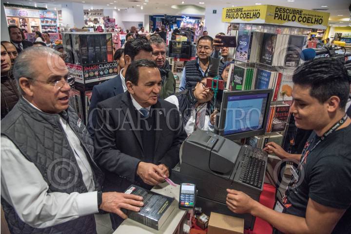CIUDAD DE MÉXICO, 16NOVIEMBRE2018.- Rogelio Cerda Pérez, Procurador Federal del Consumidor, y José Manuel López Campos, presidente de Concanaco Servytur, encabezaron esta mañana el arranque del Buen Fin 2018 en la Plaza Comercial parque Delta. En la imagen, los funcionarios, realizaron una compra de un libro. FOTO: MARIO JASSO /CUARTOSCURO.COM