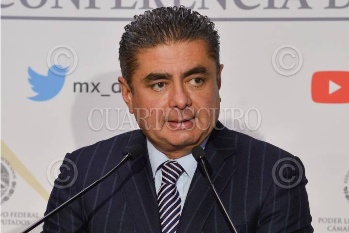 Luis Espinosa Cházaro, coordinador del PRD, durante conferencia de prensa, mientras se lleva a cabo la sesión ordinaria de la Cámara de Diputados.