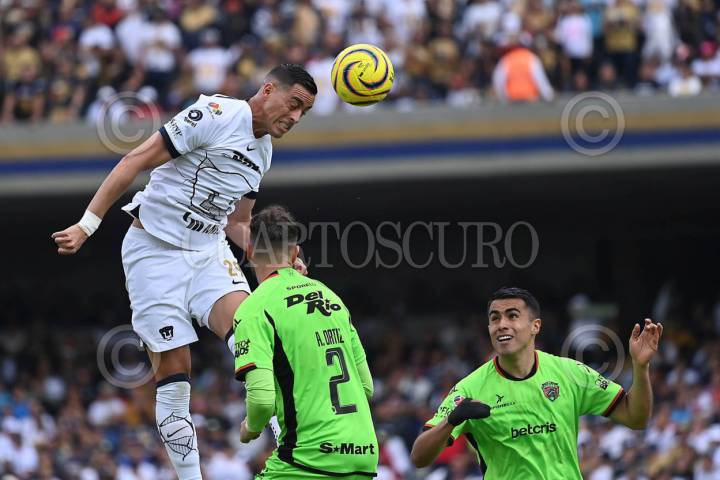 CIUDAD DE MÉXICO, 14ENERO2024.- Pumas debuta con un triunfo por 1-0 sobre los Bravos del FC Juárez en el Clausura 2014 de la Liga MX, para comenzar así con el pie derecho la etapa de Gustavo Lema como director técnico de la escuadra. En la imagen Rogelio Funes Mori de Pumas remata de cabeza durante el encuentro. FOTO: CLUB PUMAS/CUARTOSCURO.COM