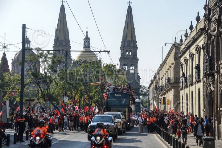 Jugadores del Atlas realizaron un recorrido en el primer cuadro de la ciudad para celebrar junto sus aficionados el campeonato obtenido luego de 70 años sin lograrlo. El recorrido se realizó de la Catedral Metropolitana a la Glorieta de los Niños Héroes.