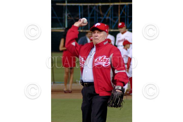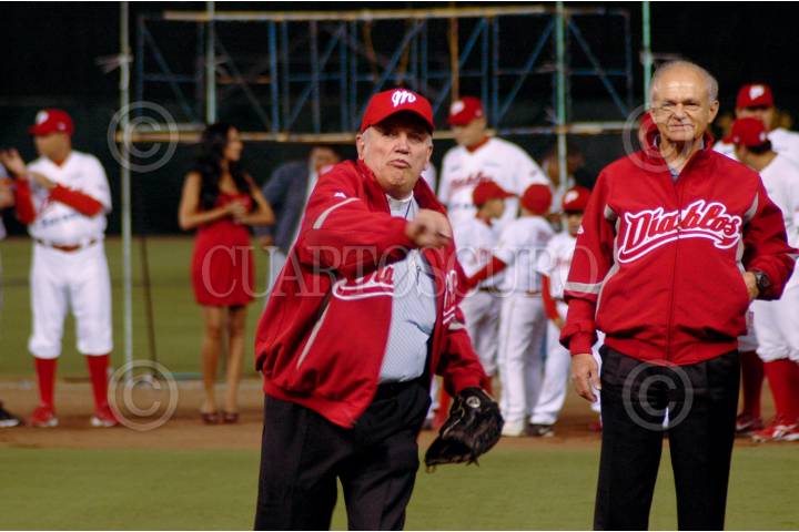 MÉXICO D.F., 18MARZO2010.- Max "Mako" Oliveras manager de los Diablos Rojos del México al inicio del encuentro en contra de los Sultanes de Monterrey en este día que iniciaron las actividades de la Liga Mexicana de Beisbol en el Foro Sol y del 70 aniversario de los Diablos Rojos. FOTO: RODOLFO ANGULO/CUARTOSCURO.COM