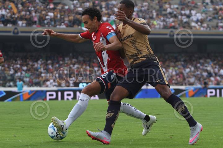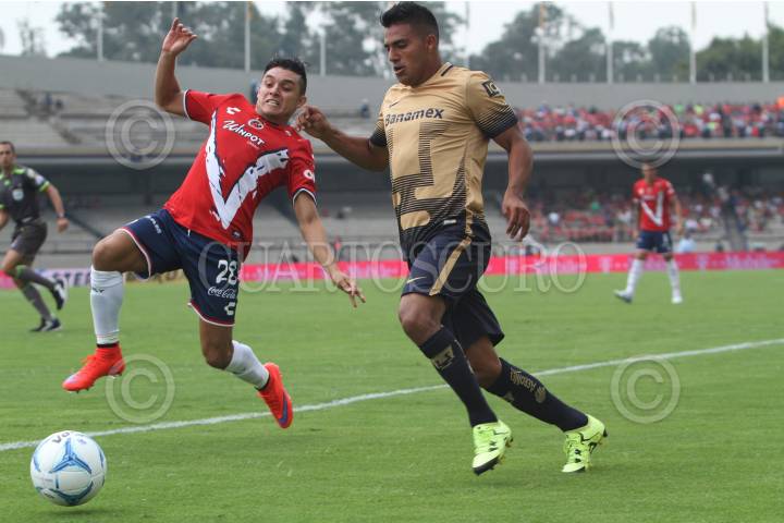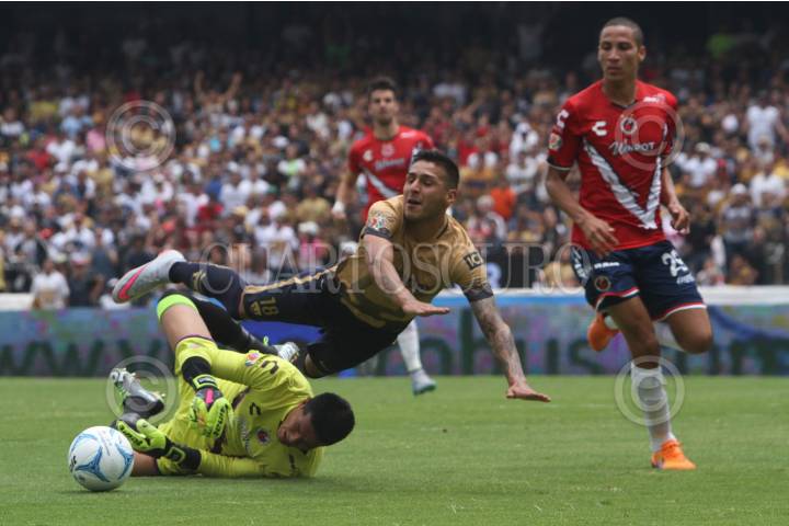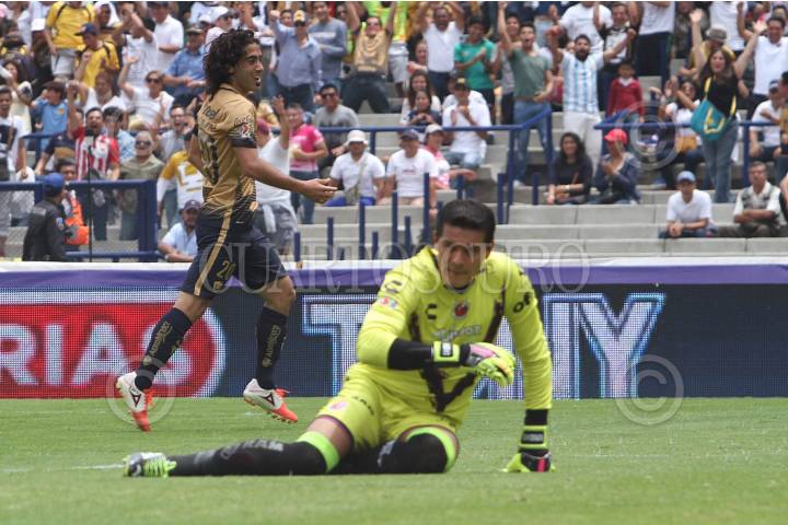 MÉXICO, D.F., 13SEPTIEMBRE2015.- El equipo universitario obtiene el liderazgo del Torneo Apertura 2015 de la Liga MX. Los Pumas vencen 3-0 a Veracruz, en el partido correspondiente a la jornada 8, celebrado en el Estadio Olímpico Universitario. Eduardo Herrera anotó el primer gol de los Pumas en el minuto 14, el cual se convierte en el gol número 3000 del equipo universitario, seguido por Matías Britos al minuto 32 y Herrera cobra un penalti que le da triunfo a su equipo. FOTO: ISABEL MATEOS / CUARTOSCURO.COM