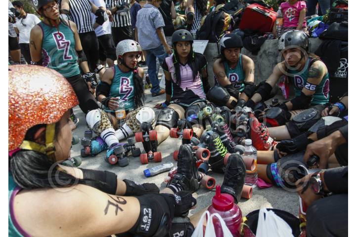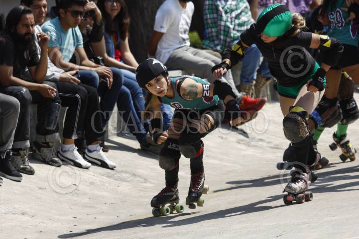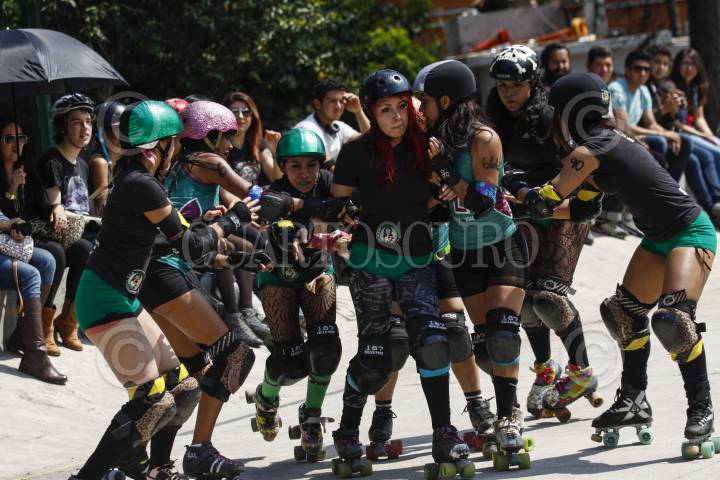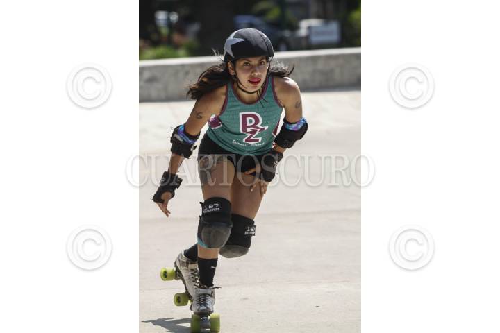 MÉXICO, D.F., 07MARZO2015.- Chicas de entre 20 a 30 años de la liga Roller Derby se enfrentan en un partido en un parque de Polanco. Roller Derby es un deporte de contacto, originario de Estados Unidos, basado en el patinaje sobre ruedas y normalmente practicado por mujeres. Mañana domingo se celebra el Día Internacional de la Mujer, de acuerdo a cifras oficiales el 25 por ciento de los 28 millones de hogares están dirigidos por mujeres, es decir 6.9 millones de familias reconocen a una mujer como jefa; el 84% de los hogares monoparentales son encabezados por mujeres y 16% por hombres. FOTO: RODOLFO ANGULO /CUARTOSCURO.COM