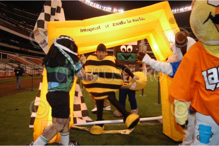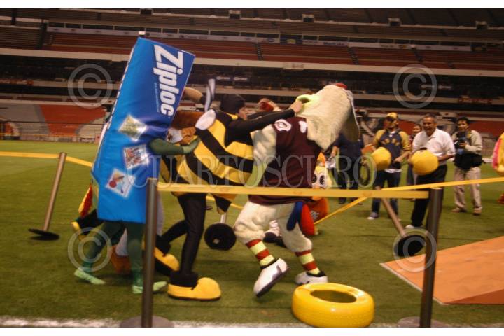 MÉXICO D.F. 08NOVIEMBRE2006.- En la cancha del estadio Azteca se realizo la sexta carrera de botargas organizada por el programa ¨Otro Rollo¨. Las mascotas de diversos equipos, universidades y empresas participaron en esta competencia comico-deportiva. FOTO: GERMÁN ROMERO/CUARTOSCURO.COM