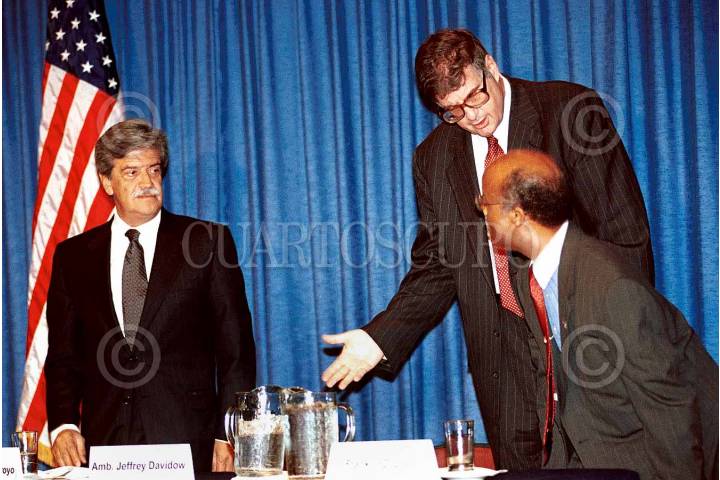 Ernesto Zedillo, acompañado de Romarico Arroyo durante la comida con la Confederacion Ganadera de Mexico en la residencia oficial de Los Pinos. FOTO: Pedro Mera/CUARTOSCURO.COM