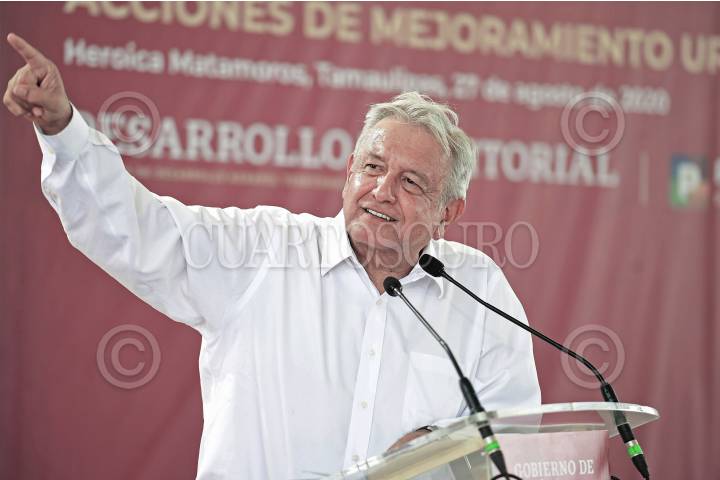 Andrés Manuel López Obrador, durante el evento de Accioones de Mejoramiento Urbano en Matamoros, Tamaulipas
