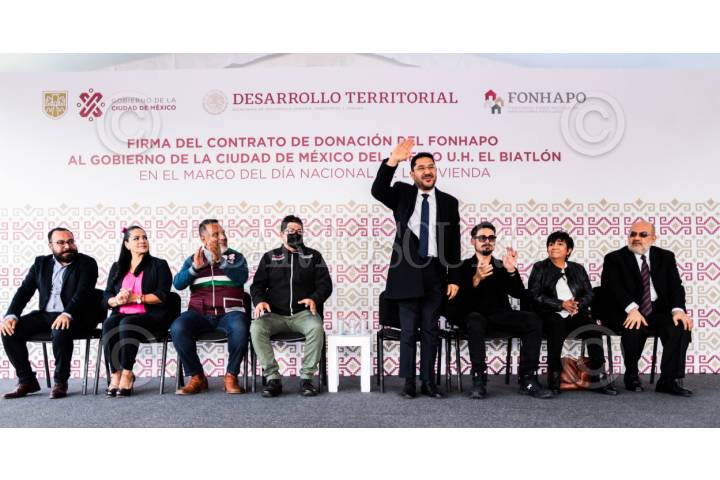 CIUDAD DE MÉXICO. 07FEBRERO2024.- El Jefe de Gobierno, Martí Batres Guadarrama, recibe por parte de FONHAPO la donación del predio de la Unidad Habitacional “El Biatlón”. También asisten el secretario de Desarrollo Agrario Territorial y Urbano (SEDATU) del Gobierno de México, Román Meyer Falcón; el secretario de Gobierno de la Ciudad de México, Ricardo Ruiz Suárez; el consejero Jurídico y de Servicios Legales, Néstor Vargas Solano; la subsecretaria de Ordenamiento Territorial y Agrario de la SEDATU, Edna Elena Vega Rangel; y la directora general del Fondo Nacional de Habitaciones Populares, Lirio Elizabeth Rivera Calderón. FOTO: GOBIERNO DE LA CIUDAD/CUARTOSCURO.COM