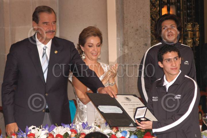 MÈXICO, D.F. 20NOVIEMBRE2005.- El presidente Vicente Fox entregò el premio Nacional de Deporte 2005 a el clavadista Romel Pacheco. FOTO:Miriam Sánchez/CUARTOSCURO.COM