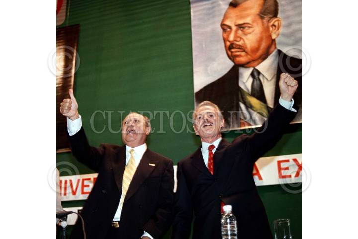 Carlos Romero Deschams y Francisco Labastida entonces candidato de PRI a la presidencia de la Republica en reunio con el sindicato de trabajadadores pertoleros. Hoy se investiga desvio de fondos por los lideres del sindicato petrolero para apoyar la campaña del candidato priista Foto: Germa Romero/ Archivo Cuartoscuro