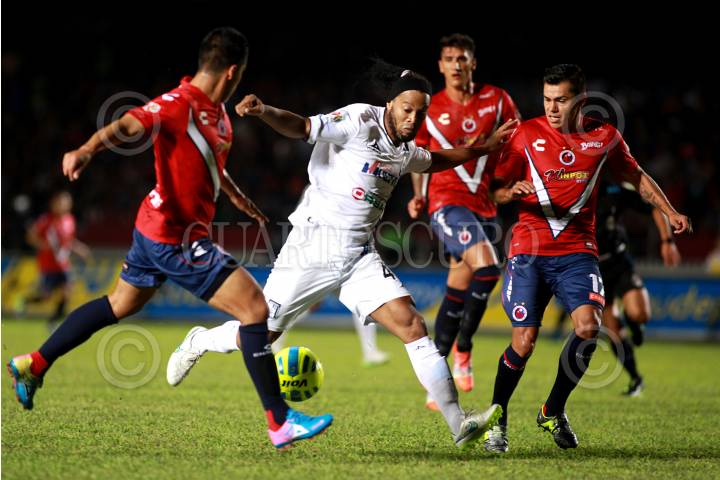 BOCA DEL RÍO, VERACRUZ, 06FEBRERO2015.- Acciones del encuentro entre Tiburones Rojos de Veracruz y Gallos Blancos de Queretaro, quienes empataron a un gol ante un estadio Luis Pirata Fuente abarrotado para observar a la estrella del fútbol mundial, Ronaldinho. FOTO: FÉLIX MÁRQUEZ /CUARTOSCURO.COM