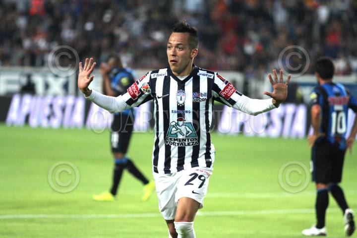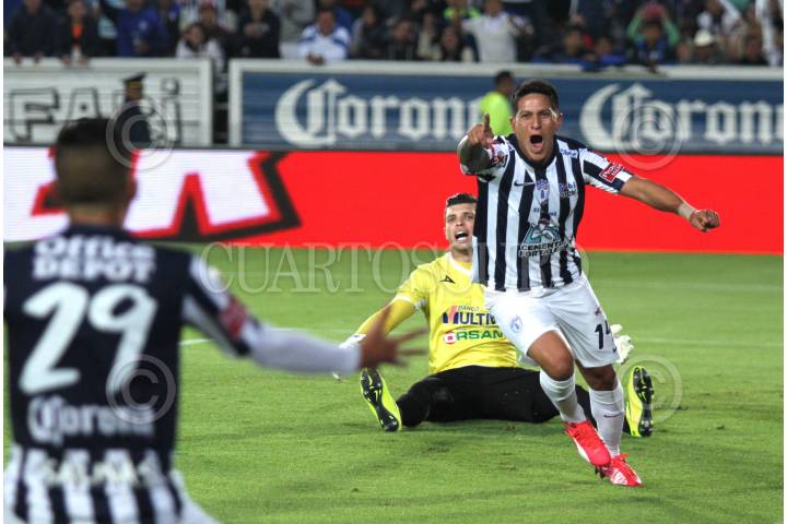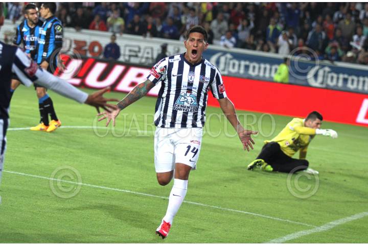 QUERÉTARO, QUERÉTARO, 24MAYO2015.- Ángel Sepúlveda de los Gallos Blancos del Querétaro anotó el primer gol del partido. El Estadio Corregidora, casa de los Gallos Blancos de Querétaro, es el escenario en donde se disputan ambos equipos el boleto a la final de este torneo. FOTO: ISABEL MATEOS /CUARTOSCURO.COM