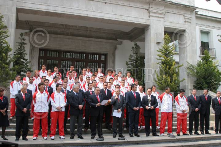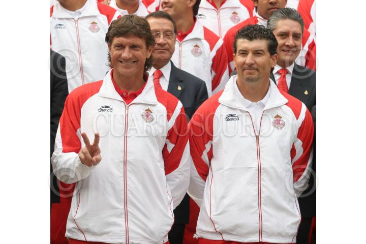 MÉXICO D.F., 14ENERO2009.- Ronaldo German Cristante, portero del Toluca y Jose Manuel de la Torre Melchaca director técnico del club, durante su visita a los Pinos donde el presidnte Felipe Calderon Hinojosa felicito al equipo por ser los campeones del torneo de clausura 2008. FOTO:RICARDO CASTELAN/CUARTOSCURO.COM