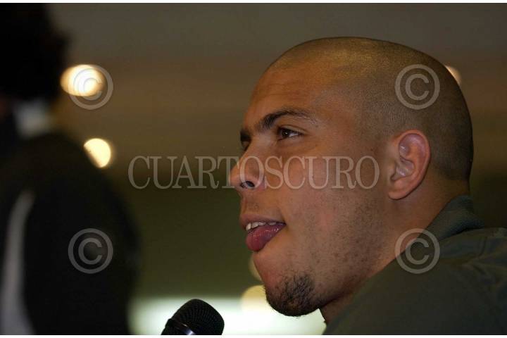 El jugador de la selección de Brasil, Ronaldo Nazario da Lima, durante una conferencia de prensa en el hotel donde estan concentrados previo al partido de mañana contra su similar de México, en el estadio Jalisco, en esta capital. FOTO: SG Fotografos/CUARTOSCURO.COM