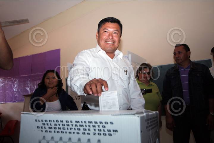 TULUM,QUINTANA ROO., 01FEBRERO 2009.-Marciano Dzul Caamal candidato del PRI a la presidencia municpal de Tulum, ejerce su voto este dia que se realiza por primera vez comicios desde que fue nombrado 9 municipio del estado de Quintana Roo. FOTO:ELIZABETH RUIZ/CUARTOSCURO.COM