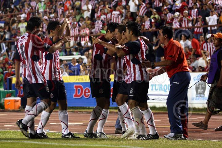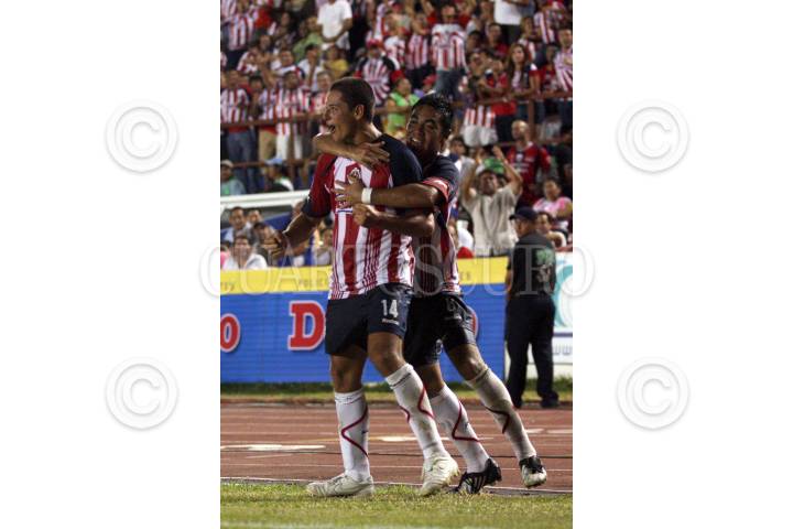 CANCUN, QUINTANA ROO, 22AGOSTO2009.- Javier Hernandez de las Chivas del Guadalajara festeja su gol ante los Potros de Quintana Roo, el marcador 2-1 favor Atlante en el estadio Andres Quintana Roo. FOTO: AMARANTA PRIETO/CUARTOSCURO.COM