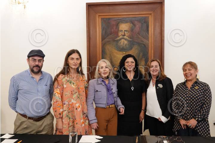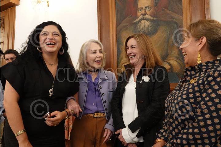 Alejandra Frausto, secretaria de Cultura; Silvia Lemus, viuda del escritor Carlos Fuentes, y Rosa Beltrán Álvarez coordinadora de Difusión Cultural de la UNAM, encabezaron la conferencia de prensa del Premio Internacional Carlos Fuentes 2022