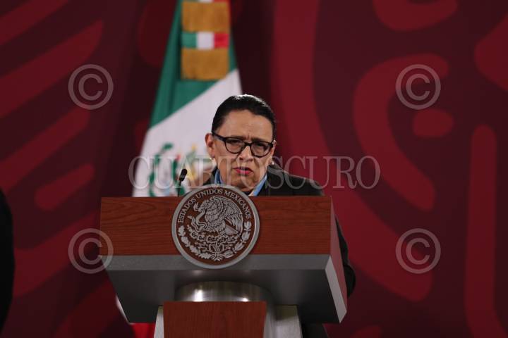 Rosa Icela durante conferencia de prensa en Palacio nacional