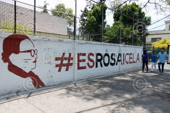 Una barda en apoyo a la secretaria de Seguridad Rosa Icela Rodríguez se observa en la alcaldía Coyoacán.