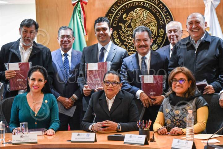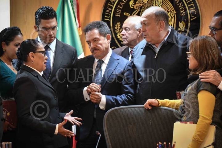 CIUDAD DE MÉXICO, 20FEBRERO2024.- Rosa Icela Rodríguez, secretaria de Seguridad y Protección Ciudadana, acudió a reunión con integrantes de la Junta de Coordinación Política (Jucopo) de la Cámara de Diputados, para sostener un dialogo para buscar soluciones conjuntas para la crisis de inseguridad que afronta el país, además de garantizar protección a los candidatos del próximo proceso electoral. La acompañaron: Jorge Romero, diputado y coordinador del PAN, y presidente de la Jucopo; Ignacio Mier, diputado y coordinador de Morena, y Rubén Moreira, diputado y coordinador del PRI. FOTO: MARIO JASSO/CUARTOSCURO.COM