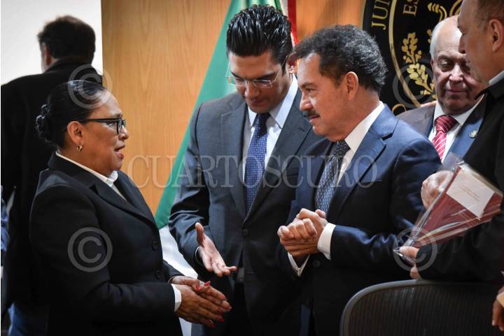 Luis Rodríguez Bucio, subsecretario de Seguridad y Protección Ciudadana; Rosa Icela Rodríguez, secretaria de Seguridad y Protección Ciudadana, y Juanita Guerra, diputada de Morena, durante la Quinta Reunión Plenaria del grupo parlamentario de Morena correspondiente al último año se ejercicio constitucional de la LXV Legislatura de la Cámara de Diputados.