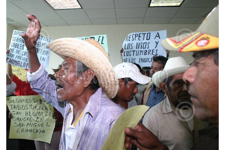 OAXACA,OAXACA 27NOVIEMBRE2007.- Habitantes de San Miguel Chimalapas, encabezados por Roberto López Rosado, después de permanecer más de 24 horas frente al Instituto Estatal Electoral y no recibir respuesta se trasladaron a la sede del Congreso para realizar una manifestación y exigir que sean respetados los acuerdos emanados de la comunidad y sea reconocido el presidente municipal elegido por usos y costumbres. FOTO: MAX NUÑEZ/CUARTOSCURO.COM