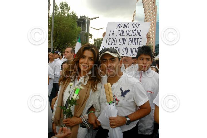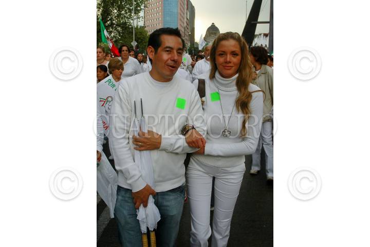 MÉXICO, D.F., 30AGOSTO2008.- Paty Manterola y el conductor Adal Ramones estuvieron presentes en la marcha Iluminemos México que se realizo del Ángel de la Independencia al Zócalo capitalino en contra de la inseguridad en el país y el rechazo a la violencia. FOTO: RODOLFO ANGULO/CUARTOSCURO.COM