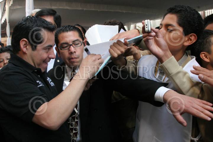 México D.F., a 6 de Diciembre de 2007.- El conductor de televisión Jordi Rosado asistio a la secundaría técnica No. 13, donde la SEP a traves del Instituto Mexicano de la Juventud, entregaron la tarjeta "Poder Joven". FOTO: VICTORIA VALTIERRA/CUARTOSCURO.COM