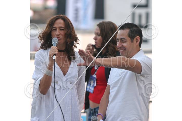 MÉXICO D.F., 25MAYO2008.- Mariana Braun y Jordi Rosado fueron los encargados de animar la carrera Kilómetros de Lucha que se realizo en el Zócalo de la ciudad de México, donde se realizó un recorrido de 5 y 10 kilómetros. FOTO: RODOLFO ANGULO/CUARTOSCURO.COM