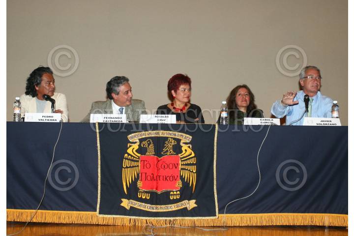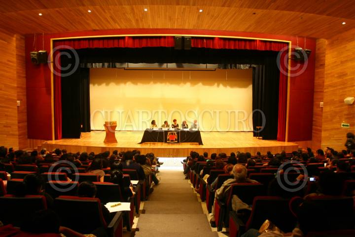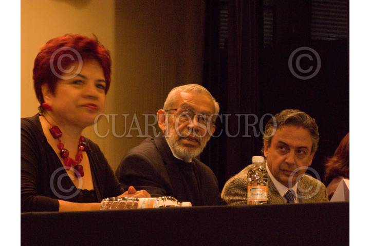 MÉXICO D.F., 17SEPTIEMBRE2008.- El director de Cuartoscuro, Pedro Valtierra, el director de la Facultad de Ciencias Políticas y Sociales, Fernando Castañeda, y los periodistas Rosalba Cruz, Carola García y Javier Solorzano, durante el homenaje que le rinde a Miguel Ángel Granados Chapa en la Facultad de Ciencias Políticas y Sociales de la Universidad Nacional Autónoma de México. FOTO: SAÚL LÓPEZ/CUARTOSCURO.COM