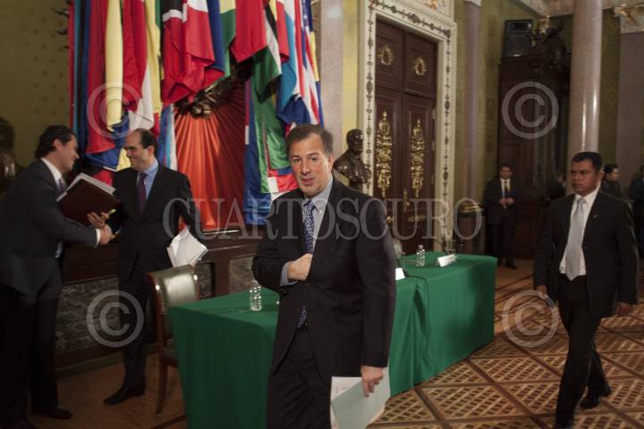 MÉXICO, D.F., 04JULIO2012.- José Antonio Meade, secretario de Hacienda y Crédito Público, ofreció una conferencia de prensa sobre la creación de empleos en los seis meses que van del año. El gran legado que dejará la administración del presidente Felipe Calderón al próximo mandatario de México será el fortalecimiento de las finanzas públicas del país, dijo el secretario al finalizar la conferencia conjunta con sus homólogos del IMSS y del Trabajo. FOTO: MOISÉS PABLO /CUARTOSCURO.COM