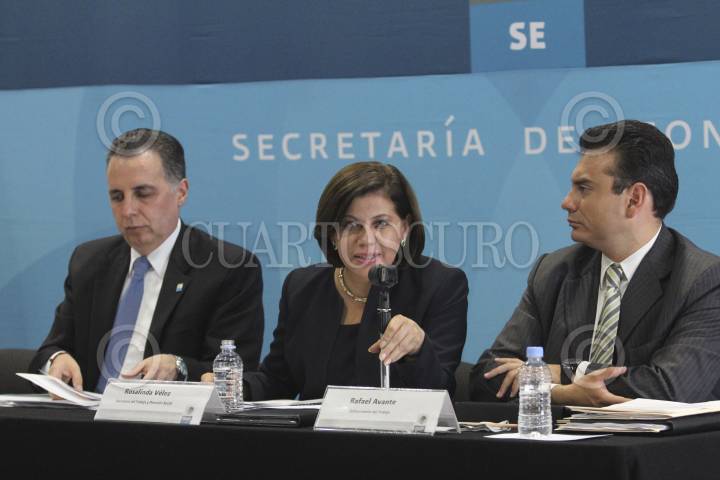 MÉXICO, D.F., 09AGOSTO2012.- Bruno Ferrari, Secretario de Economía, Rosalinda Vélez Juárez, Secretaria del Trabajo y Previsión Social y Rafael Avante, Subsecretario de trabajo, en conferencia de prensa anunciaron detalles sobre el accidente ocurrido en las minas carboníferas de Coahuila y anunciaron las medidas que el gobierno tomara para el cierre de los pozos y minas clandestinas de carbón. FOTO: SAÚL LÓPEZ /CUARTOSCURO.COM