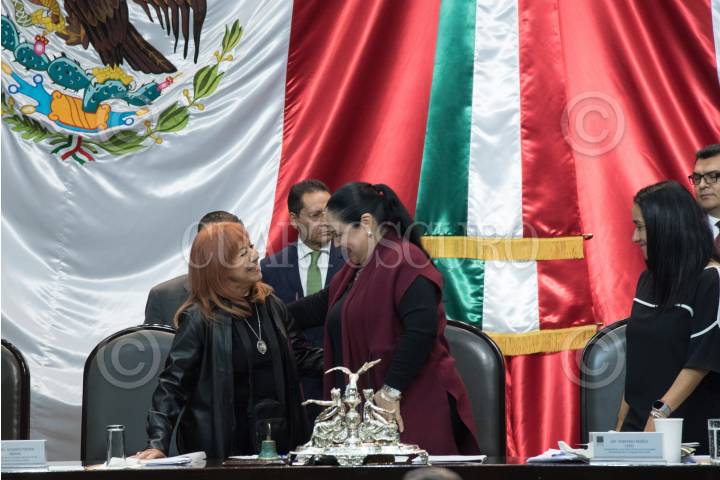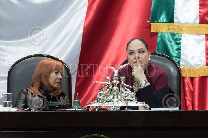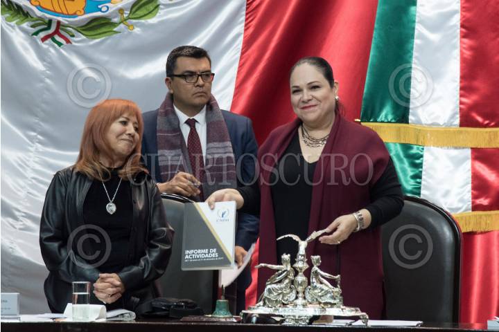 Rosario Piedra, titular de la Comisión Nacional de Derechos Humanos (CNDH), en compañía de Mónica Fernández, presidente de la mesa directiva del Senado de la República, compareció ante el pleno de la Comisión Permanente del Congreso de la Unión.
