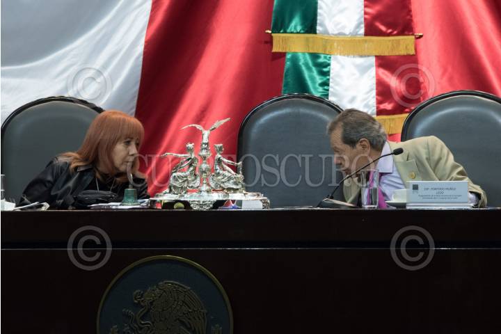 Rosario Piedra, titular de la Comisión Nacional de Derechos Humanos (CNDH), en compañía de Porfirio Muñoz Ledo, compareció ante el pleno de la Comisión Permanente del Congreso de la Unión en referencia a su primer informe de actividades.