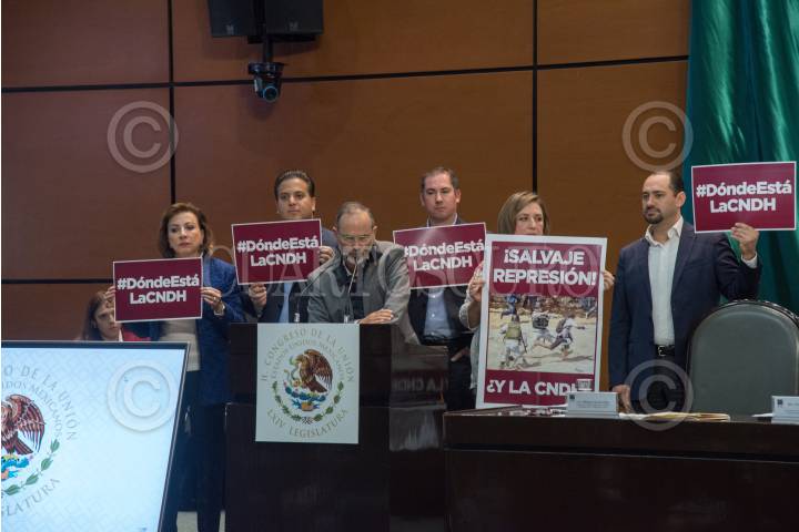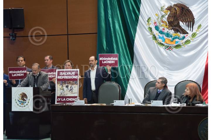 Integrantes del grupo parlamentario del PAN se manifestaron durante la comparecencia de Rosario Piedra, titular de la Comisión Nacional de Derechos Humanos (CNDH).