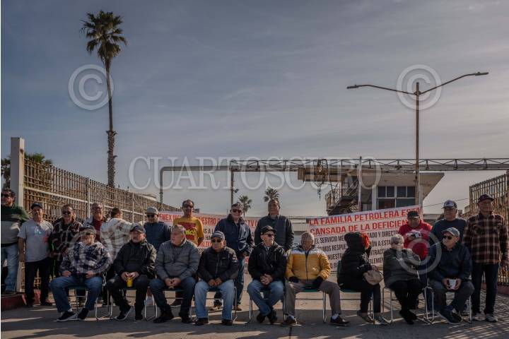 ROSARITO, BAJA CALIFORNIA 17FEBRERO2025.- Por falta de servicios médicos, trabajadores jubilados tomaron las instalaciones de Pemex en el municipio de Rosarito por tercera ocasión, esta vez comentan no se moverán hasta recibir una respuesta. Rafael Rentería Franco, trabajador jubilado de Pemex, comentó que desde el pasado 13 de enero, ellos ya no cuentan con las especialidades de servicios médicos siendo más de 2 mil personas las afectadas. El día 7 de febrero recibieron un oficio donde se aseguraba que a más tardar el día 14 del mismo vez volverían a tener los servicios completos, hecho que se percataron que hasta el momento no ha ocurrido. Por lo que esta vez aseguraron no se retirarán del lugar hasta que se les resuelva esta problemática. Alrededor de 40 personas “La intención de nosotros es esperar hechos, mientras no tengamos hechos, no nos quitaremos”, aseguró Rafael. FOTO: OMAR MARTÍNEZ CUARTOSCURO.COM
