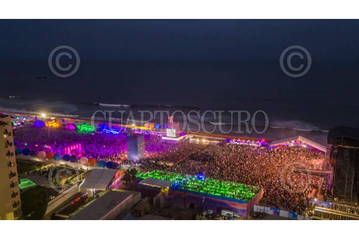 ROSARITO, BAJA CALIFORNIA, 09AGOSTO2025.- Vista panorámica del Baja Beach 2025, festival de musica urbana más importantes de América Latina, que atrajo a miles de visitantes nacionales y extranjeros en su séptima edición. Durante el sábado por la noche , las playas, calles y comercios lucieron abarrotados. Dentro del evento, en el recinto principal, el público disfrutó de artistas internacionales que hicieron vibrar el escenario, mientras que en las calles aledañas la fiesta continuó: turistas bailaban, brindaban y degustaban la gastronomía local. El Baja Beach Fest este sábado estuvo dominado por figuras clásicas del reguetón como Don Omar, Arcángel y Wisin; para este domingo el cartel principal lo integrarán Maluma, Mike Towers, entre otros. FOTO: OMAR MARTÍNEZ/ CUARTOSCURO.COM