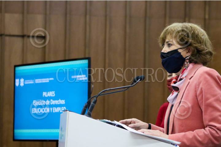 Rosaura Ruiz Gutiérrez, secretaria de Educación, Ciencia, Tecnología e Innovación (Sectei), durante la conferencia.
