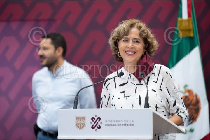 Rosaura Ruiz Gutiérrez, secretaria de Educación, durante el anunció del programa Verano Divertido, que ofrecerá actividades lúdicas y deportivas a niños capitalinos.