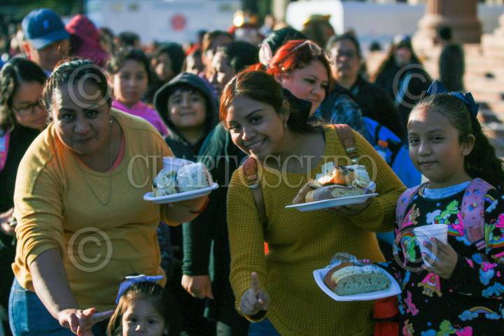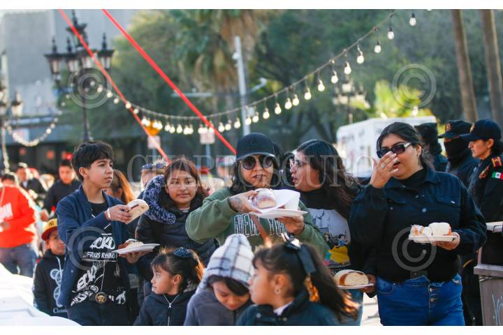 MONTERREY, NUEVO LEÓN, 06ENERO2024.- Cientos de personas acudieron a la Macroplaza para recibir un pedazo de la Mega Rosca de Reyes, la cual midió 350 metros. FOTO: GABRIELA PÉREZ MONTIEL / CUARTOSCURO.COM