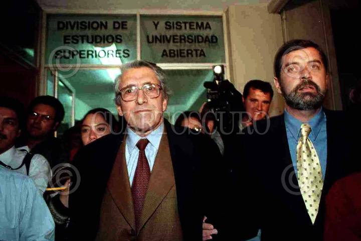 Alejandro Rossi y Juan Ramon de la Fuente rector de la UNAM, realizaron un recorrido por la noche de hoy por las instalaciones de la Escuela Nacional de Enfermeria y Obstetricia que fueron recuperadas por rectoría.