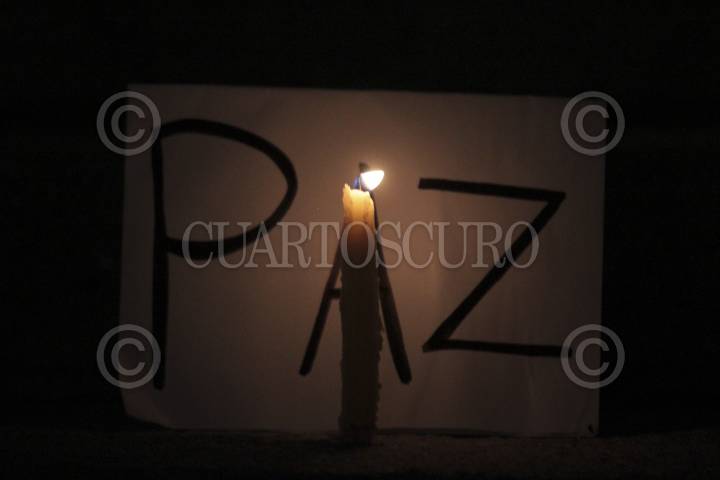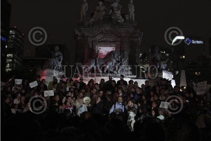 MÉXICO, D.F, 26AGOSTO2011.- Un grupo de personas entre niños, jóvenes y adultos, se manifestaron en la glorieta del Ángel de la Independencia para reprochar el ataque que sufrió el Casino Royal en Monterrey donde murieron mas de 50 personas civiles que en su mayoría eran mujeres por miembros del crimen organizado. En forma de luto por los acontecimientos que ha provocado la lucha contra el crimen organizado, mostraron pancartas y prendieron veladoras exigiendo al gobierno federal encabezado por Felipe Calderón, Presidente de México se acaben los actos violentos en el país. FOTO: ENRIQUE ORDÓÑEZ/CUARTOSCURO.COM