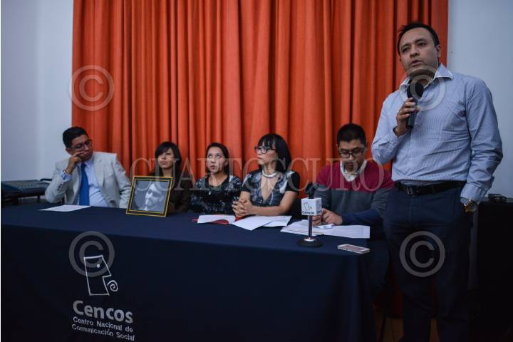 CIUDAD DE MÉXICO, 21ABRIL2016.- Héctor Pérez, abogado de la Clínica contra la Trata ITAM, Patricia Espinosa Becerril y Alma Espinosa Becerril, hermanas del fotoperiodista Rubén Espinosa, Karla Micheel, Grupo de Acción, Luis Eduardo Knapp, abogado de Artículo 19, David Peña, Grupo de Acción por los Derechos Humanos y la Justicia Social A.C., durante la conferencia sobre el "Caso Narvarte", realizada en Cencos. Informaron que el juzgado 16º de Distrito de Amparo en materia penal concedió un amparo a las familias victimas de los asesinatos, en contra de la negativa de la PGJDF para aceptar pruebas, agotar líneas de investigación y esclarecer el móvil del múltiple asesinato. Está resolución obliga a las autoridades de investigación a no cerrar el caso y tendrá que seguir investigando hasta agotar todas las líneas de investigación. FOTO: ADOLFO VLADIMIR /CUARTOSCURO.COM