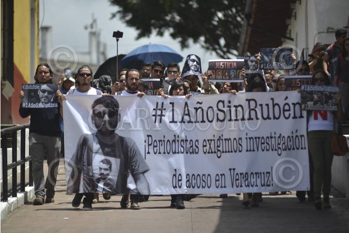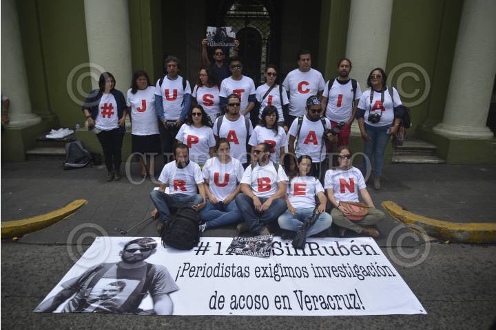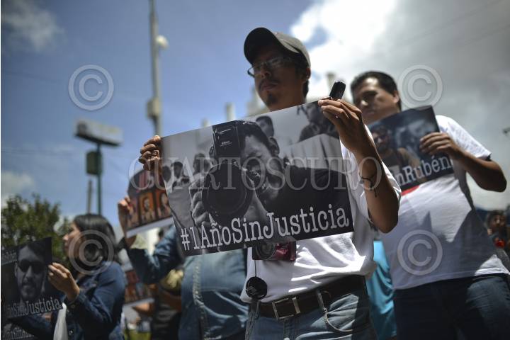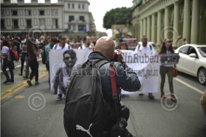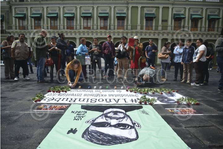 XALAPA, VERACRUZ, 31JULIO2016.- A un año de el asesinato del fotoreportero Rubén Espinosa Becerril; quien fue ultimado junto con Mile Martín, Yesenia Quiroz, Alejandra Negrete y Nadia Vera, en un departamento de la colonia Narvarte, sus amigos le recordaron, celebración encabezada por su hermana Patricia Espinosa. Sus compañeros de trabajo se congregaron en la Plaza Lerdo, en donde Espinosa Becerril cubrió decenas de manifestaciones por los asesinatos de otros periodistas en el estado de Veracruz, ahí exigieron justicia y el cese del ambiente de represión en el que se ejerce el trabajo periodístico en el país. FOTO: ALBERTO ROA /CUARTOSCURO.COM