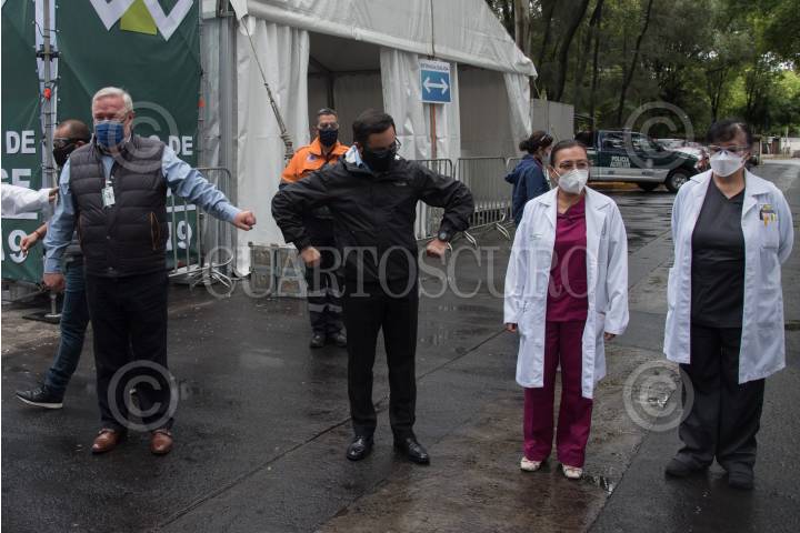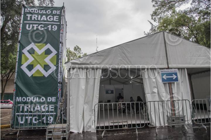 El módulo de triage covid-19 fue instalado al exterior del Hospital Rubén Leñero, en donde pacientes con sintomatología de esta enfermedad son diagnosticados y en caso de ser necesario trasladados a un hospital para su atención. El lugar cuenta dos consultorios.