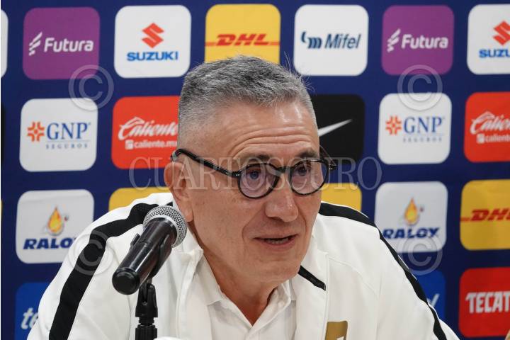 CIUDAD DE MÉXICO, 19JULIO2024.- Miguel Mejía Barón, vicepresidente deportivo del Club Universidad Nacional, durante la presentación oficial de los refuerzos del Club: Michell Rodríguez (mediocampista), Rubén Duarte (defensa), Ignacio Pussetto (delantero) y Jorge Ruvalcaba (centrocampista) fueron presentados oficialmente ante el club para disputar las siguientes jornadas del torneo. FOTO: GALO CAÑAS/CUARTOSCURO.COM