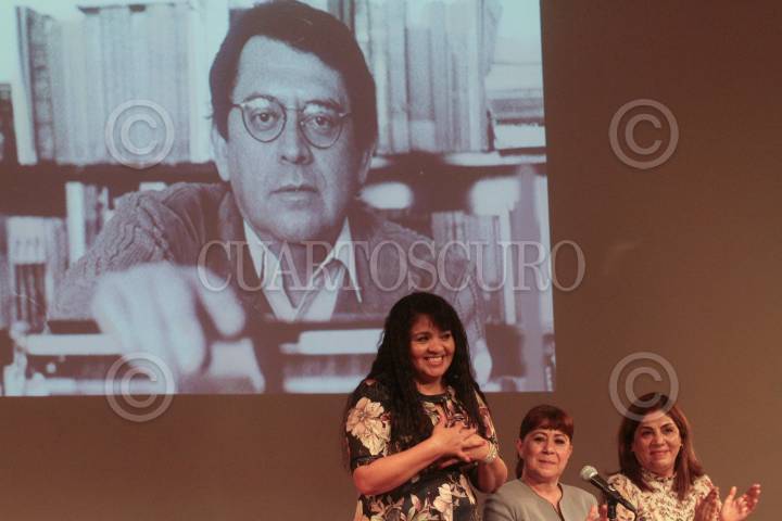 CIUDAD DE MÉXICO 15OCTUBRE2017.- Rubén Sarabia "Simitrio", recibió el Premio Nacional Carlos Montemayor 2017, quien no puedo asisitir, en su lugar fue su pareja sentimental Rita Amador; en una ceremonia realizada en el Palacio de Bellas Artes. FOTO: MOISÉS PABLO /CUARTOSCURO.COM