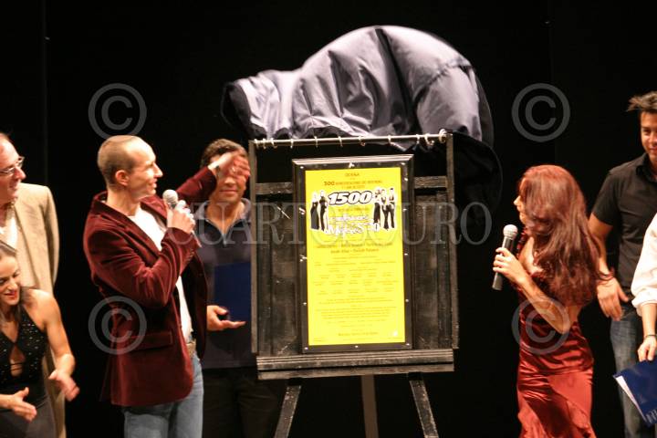 MEXICO, D.F. 30SEPTIEMBRE2005.- La obra de teatro Confesiones de Mujeres de 30 cumplió 300 representaciones. Erik Rubín y Mariana Garza develaron la placa conmemorativa. FOTO: Nelly Salas/CUARTOSCURO.COM