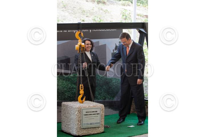 MÉXICO, D.F., 16JUNIO2011.- Consuelo Sáizar, presidenta del Conaculta, y Marcelo Ebrard Casaubón, Jefe de Gobierno, durante la ceremonia de colocación de la primera piedra de las obras para la ampliación y remodelación del Museo Tamayo. FOTO: MOISÉS PABLO/CUARTOSCURO.COM