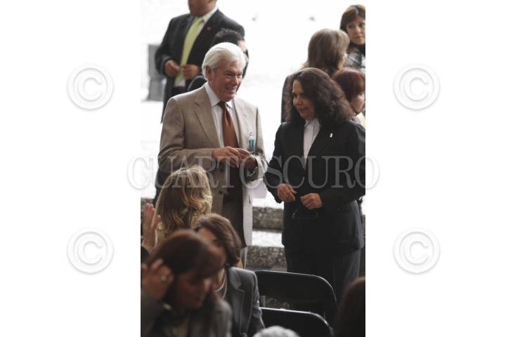 MÉXICO, D.F., 21AGOSTO2012.- Consuelo Sáizar, Presidenta de Conaculta y el arquitecto Teodoro González de León, momentos antes de la ceremonia de reinauguración del Museo Rufino Tamayo. FOTO: GUILLERMO PEREA /CUARTOSCURO.COM